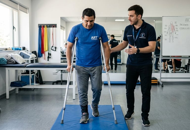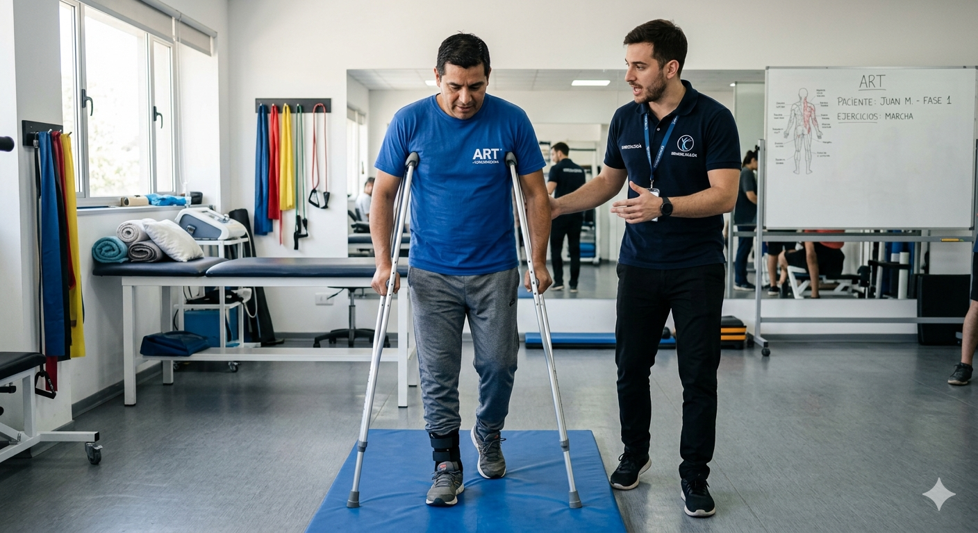 Rehabilitación de lesiones laborales y accidentes de trabajo, con tratamiento orientado a la recuperación funcional y reintegro a la actividad laboral. Atención profesional en rehabilitación traumatológica.